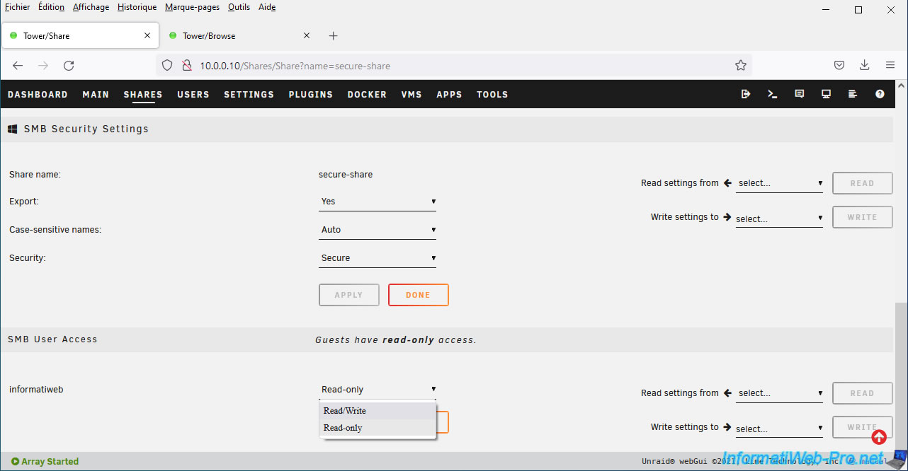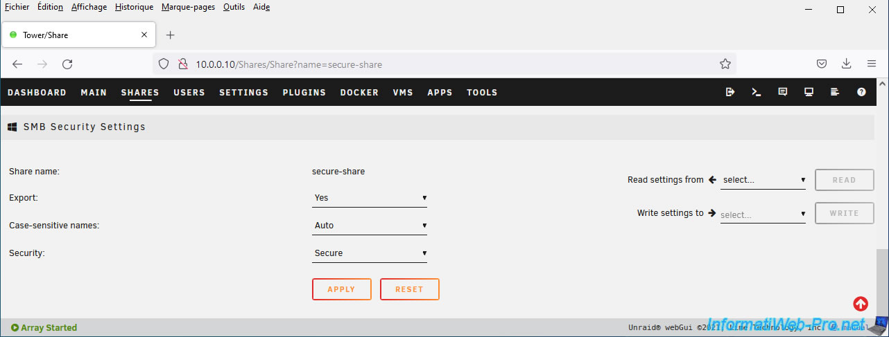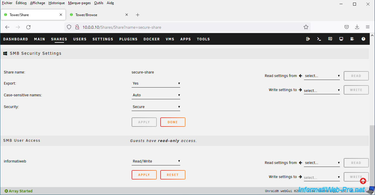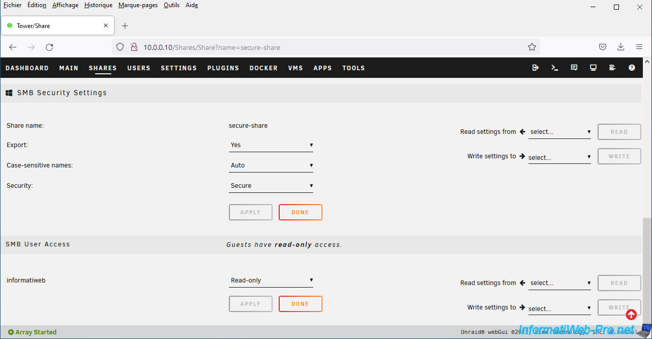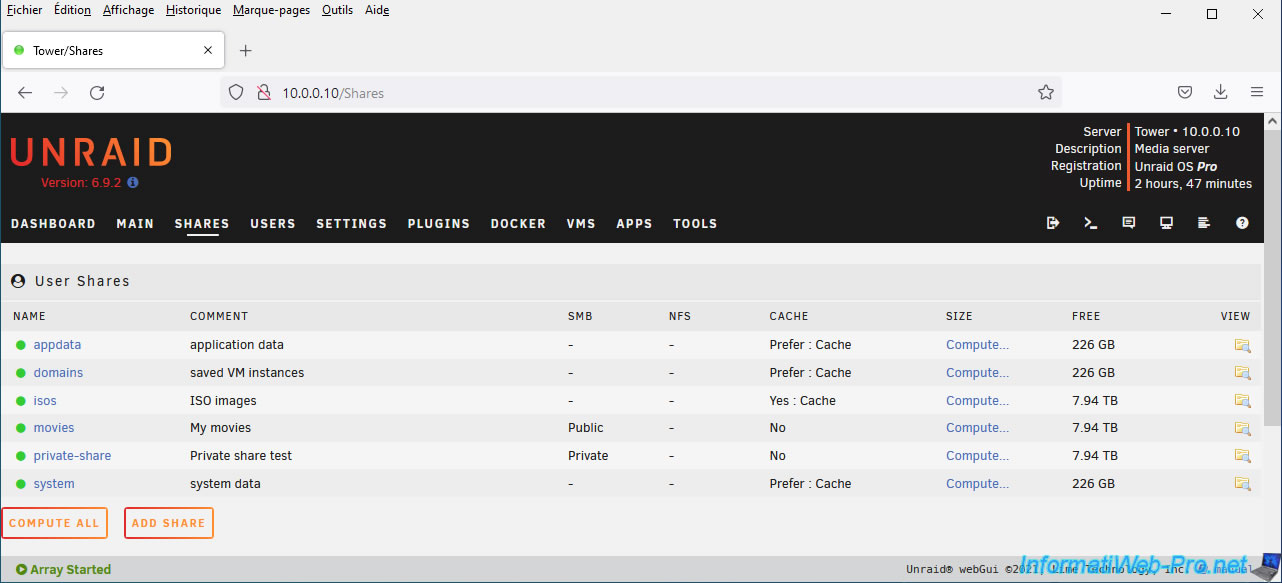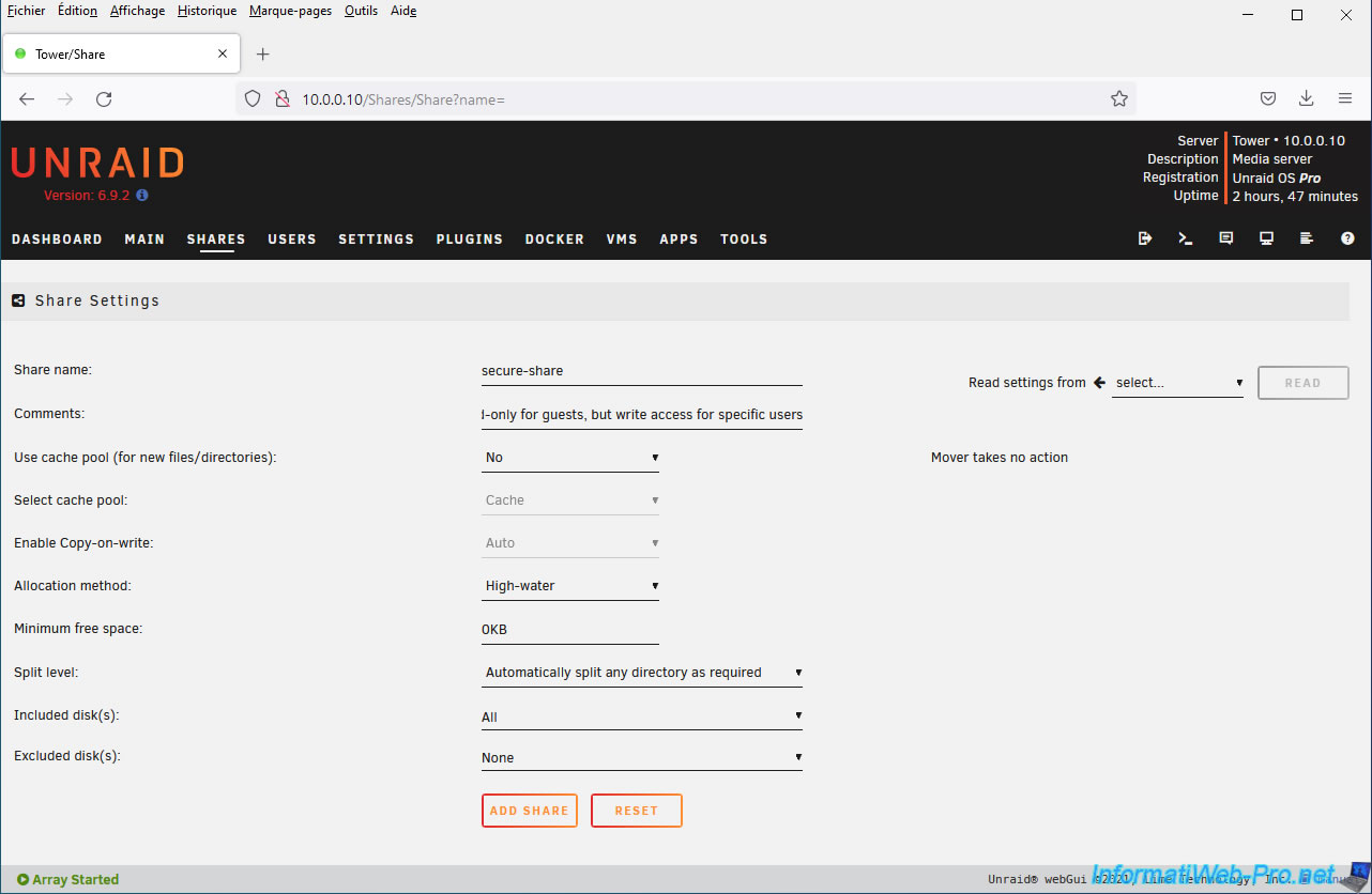 Unraid also allows you to create secure network shares.