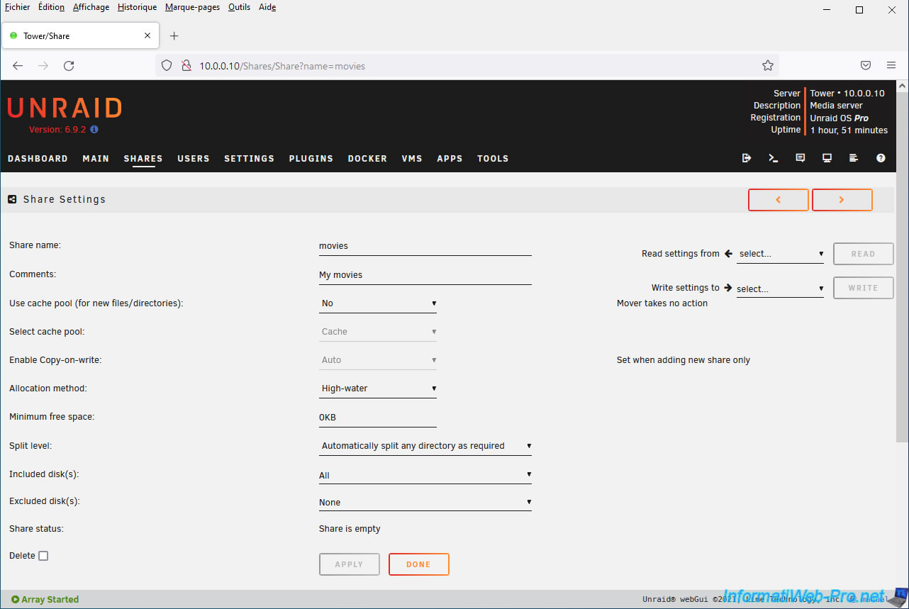 On this "Global Share Settings" page, you will see that there are 2 types of shares on Unraid: