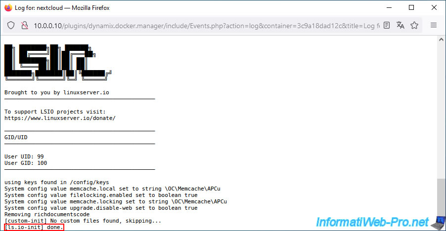 Make sure the message "[ls.io-init] done." appears.