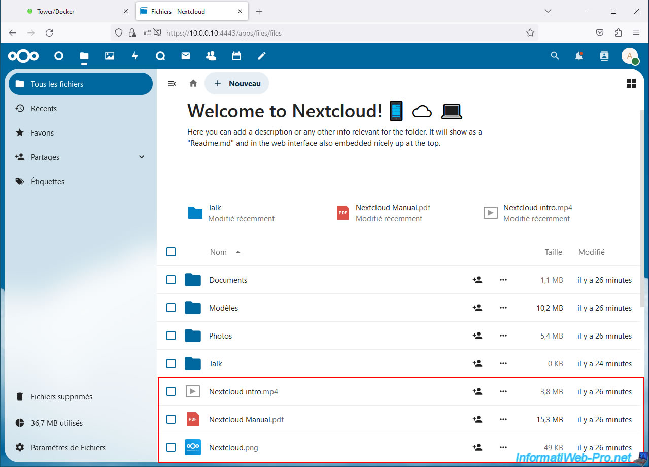 When you install Nextcloud, several sample folders and files are automatically created on your server.