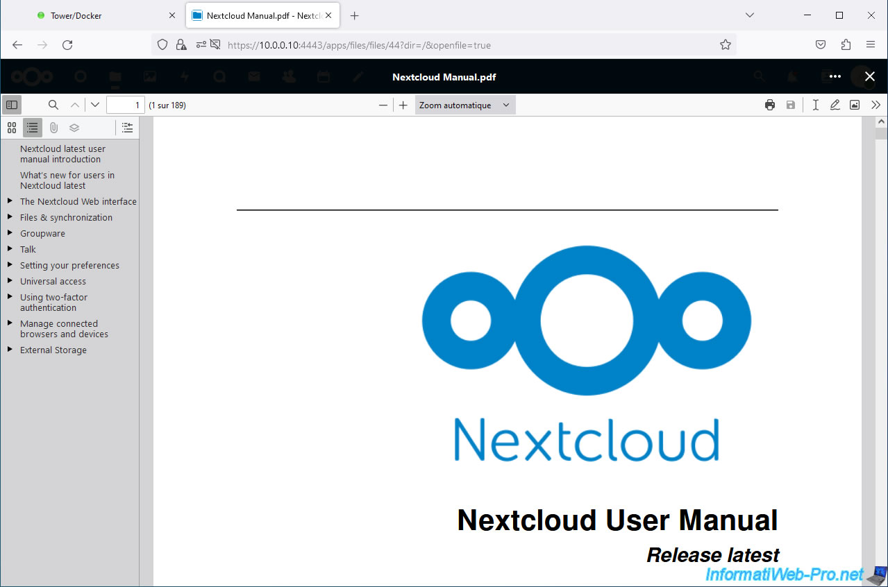 Open your "nextcloud" container logs again.