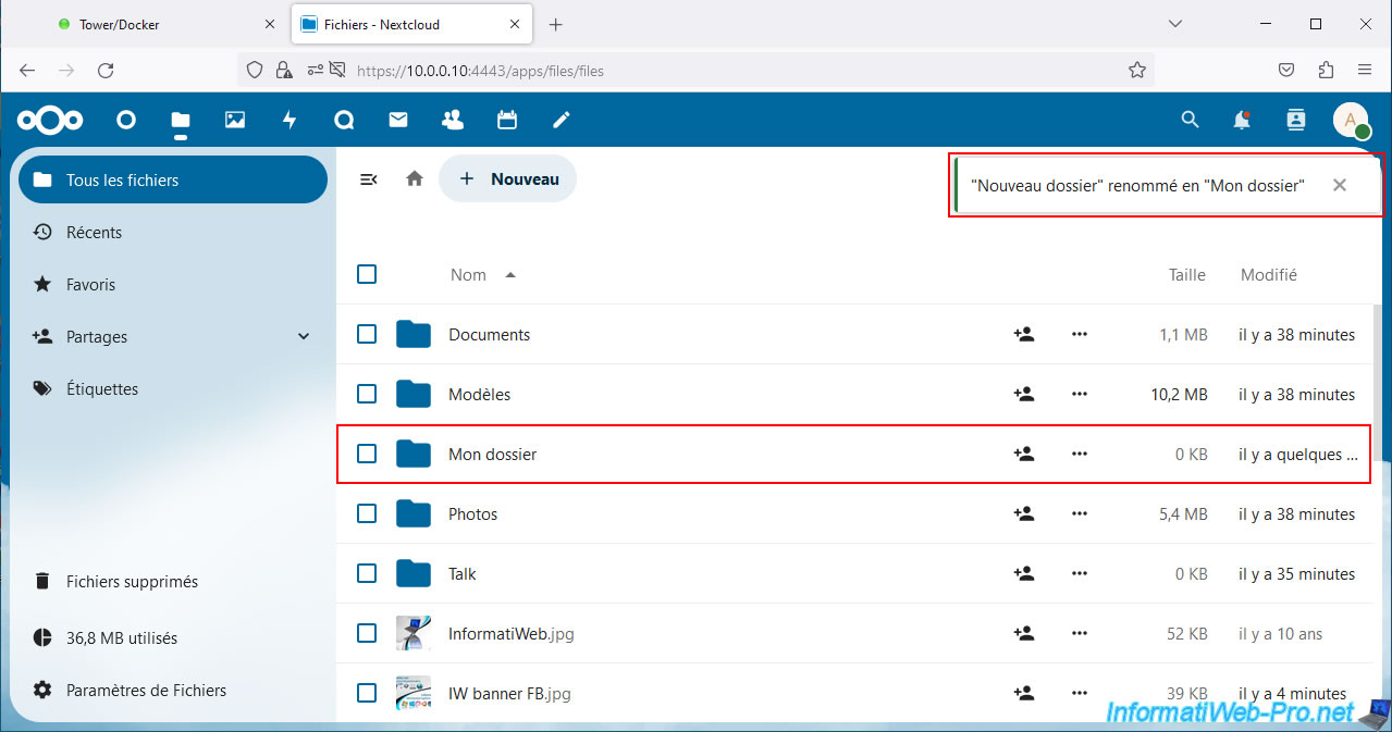 By default, Nextcloud allows you to indicate the new name of this new folder.