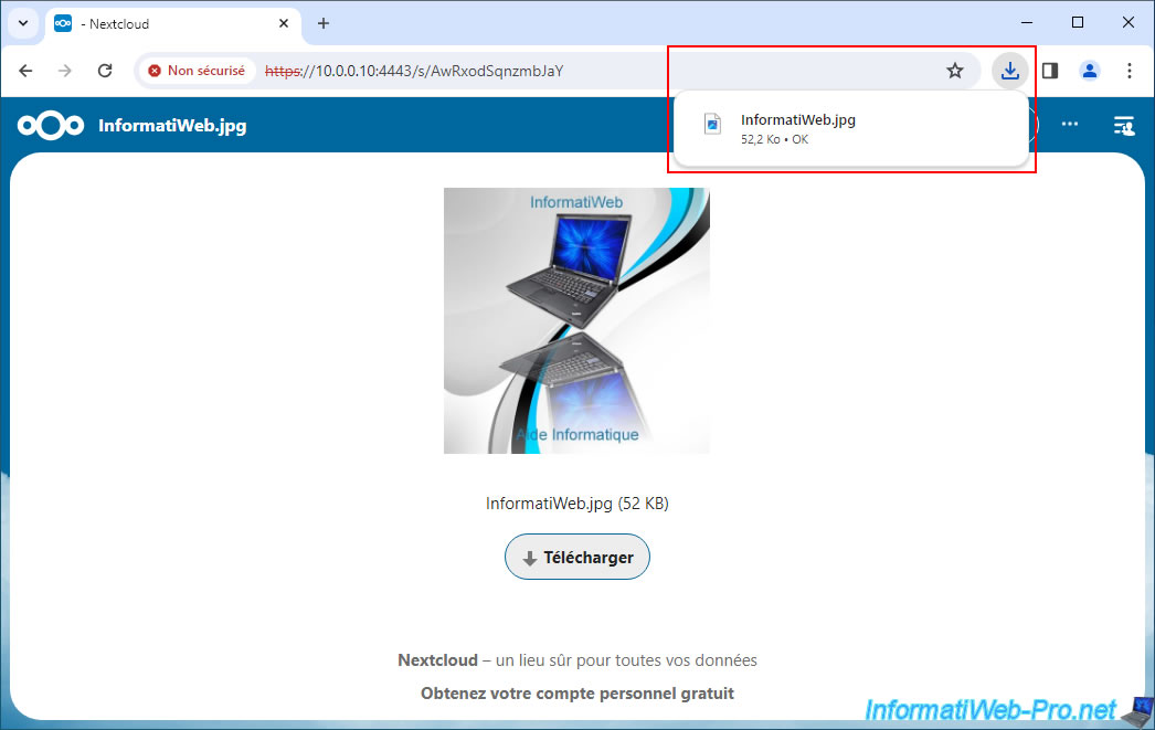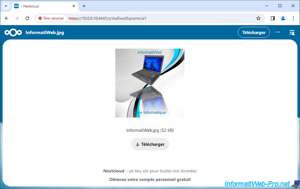 As expected, downloading a shared file works without you having to log in with an account on your Nextcloud server.