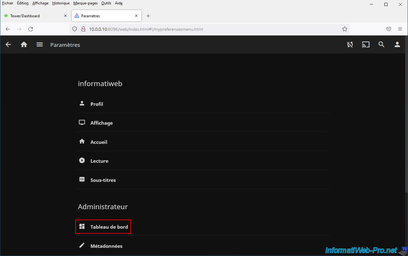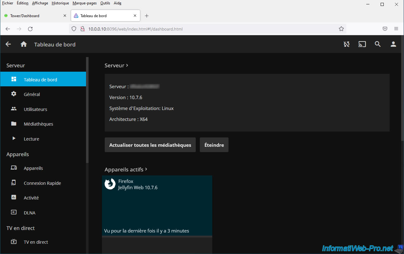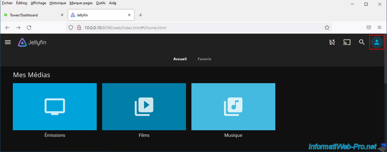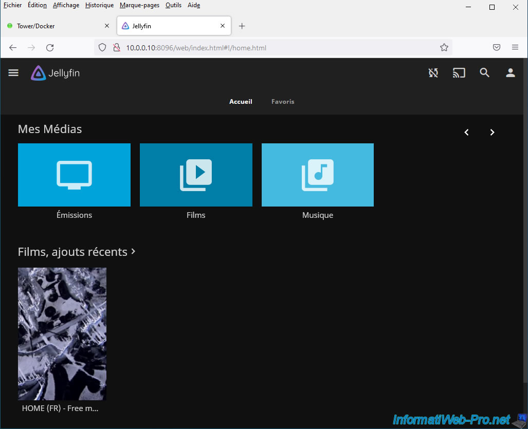 The Jellyfin dashboard appears.