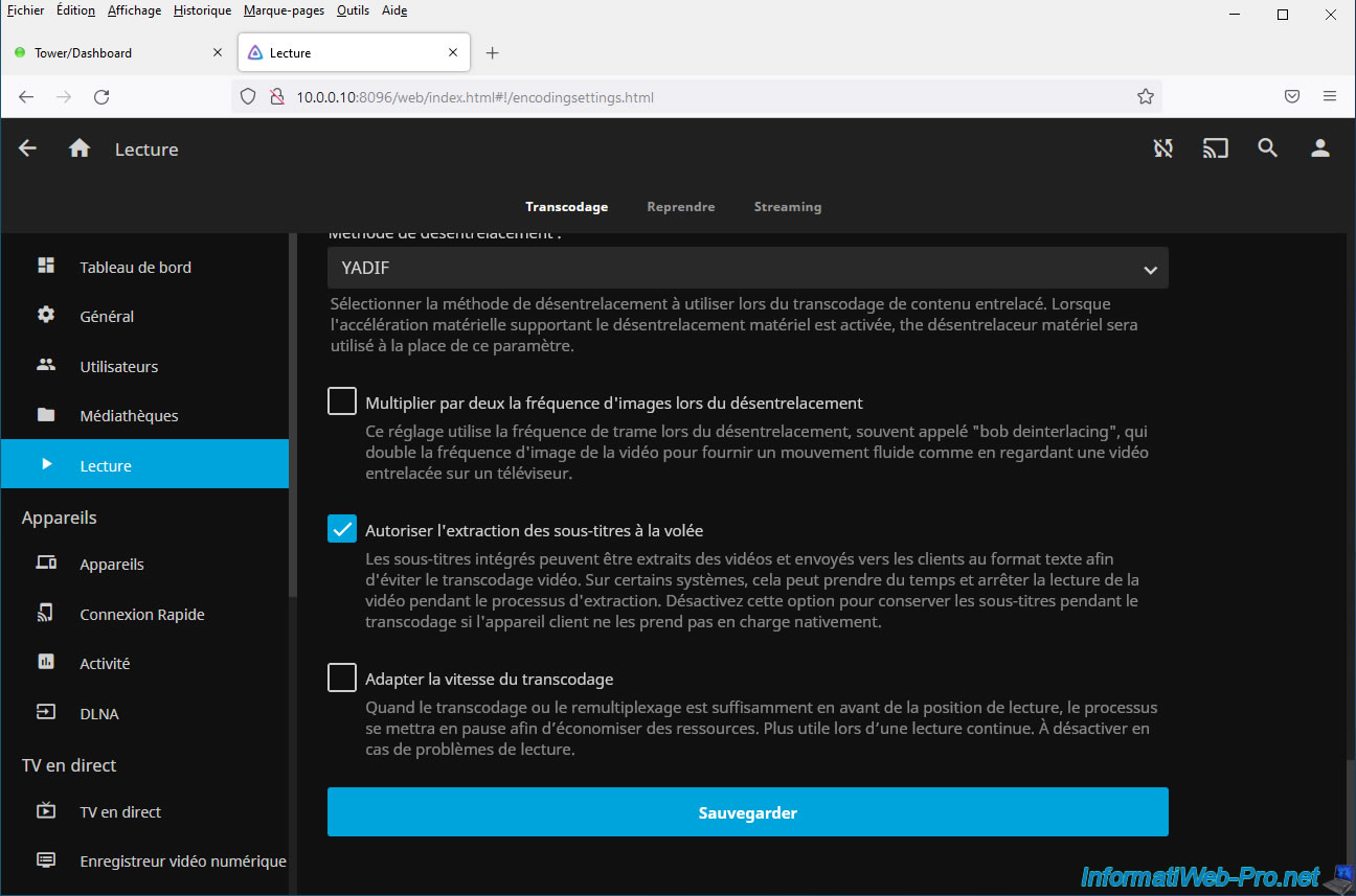 Thanks to Jellyfin, you will be able to dynamically convert (transcode) your videos into other qualities.