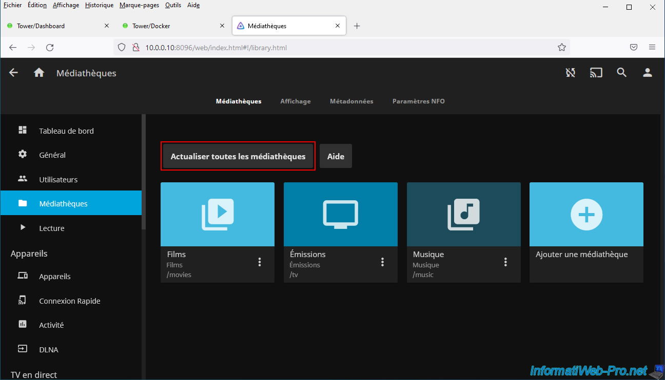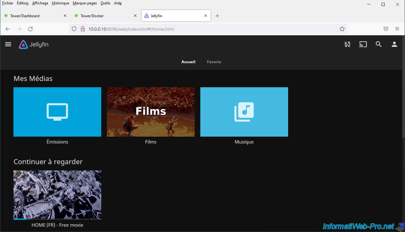 If you add films, TV series and/or music after configuring Jellyfin, they will not automatically appear by default.