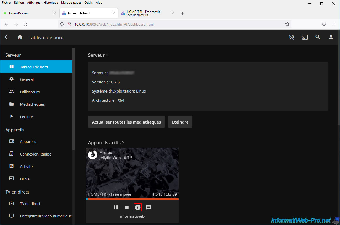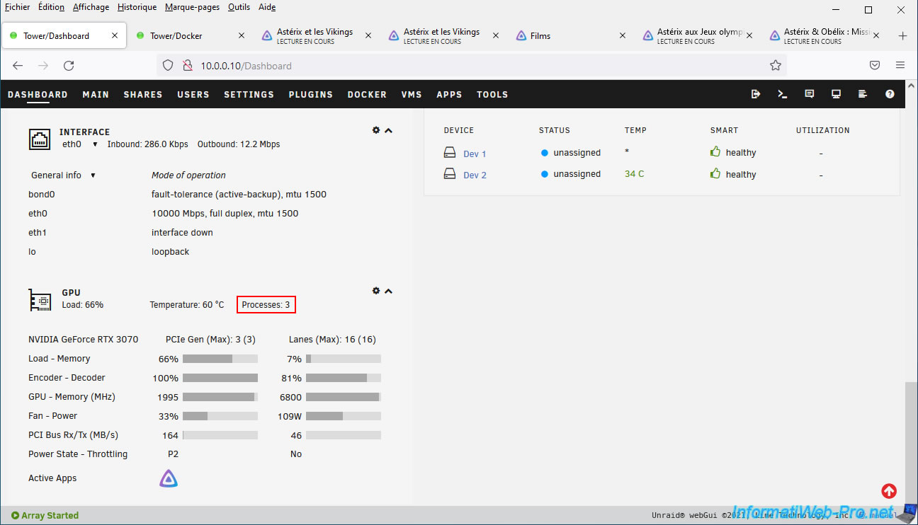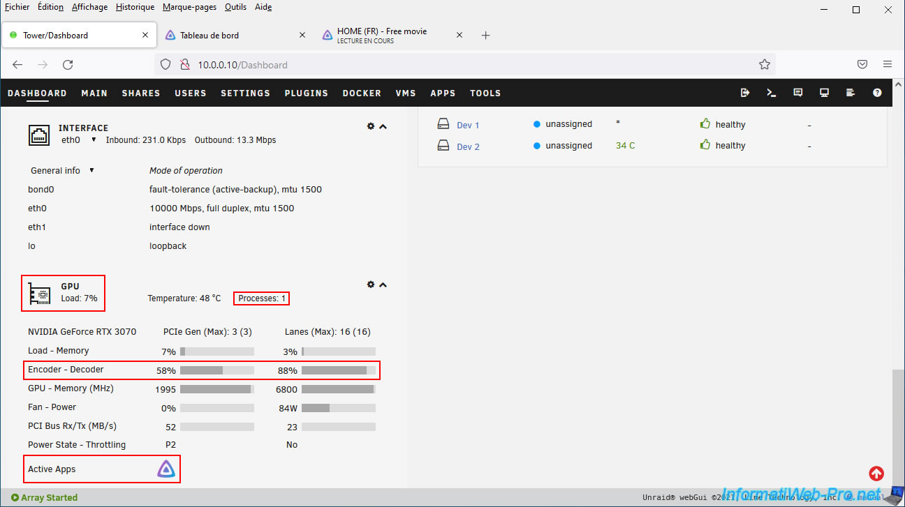On the other hand, you will see that your graphics card is actually used by Jellyfin and more particularly for video encoding / decoding (Encoder / Decoder).