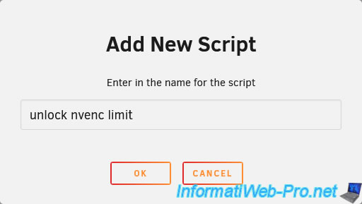 Specify "unlock nvenc limit" (for example) for the name of the script to add and click OK.