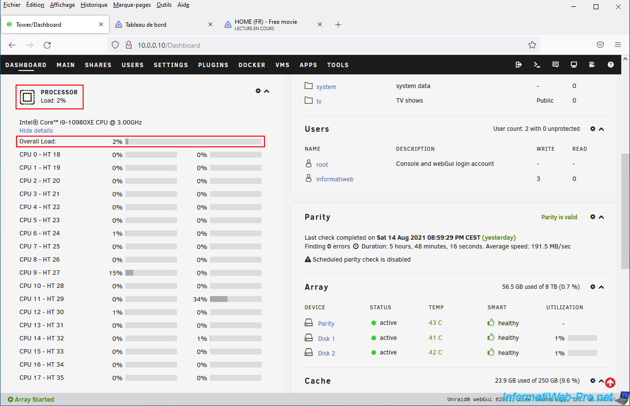 If you open your Unraid server dashboard, you will see that the processor is not used.