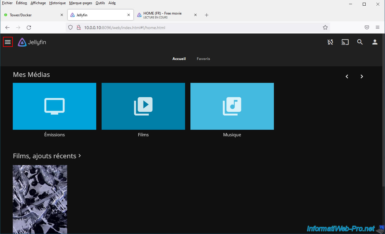 Open the Jellyfin menu by clicking on the "Menu" icon located at the top left.