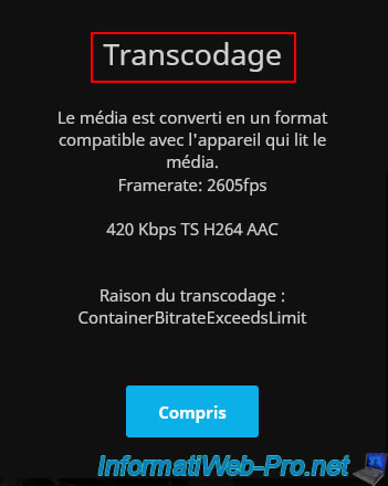 As you can see in the "Transcoding" box that appears, Jellyfin tells you that media is currently converted to the indicated format.