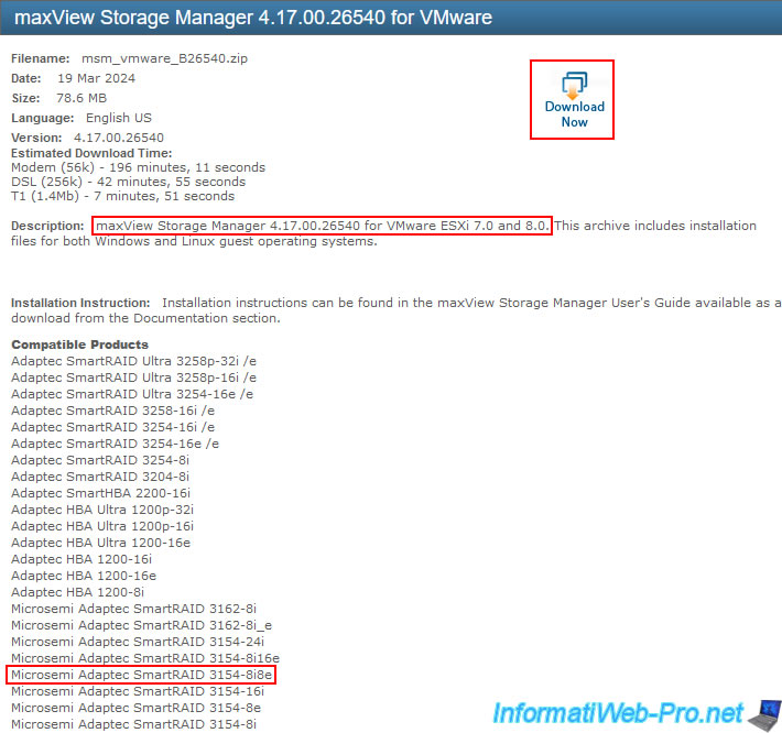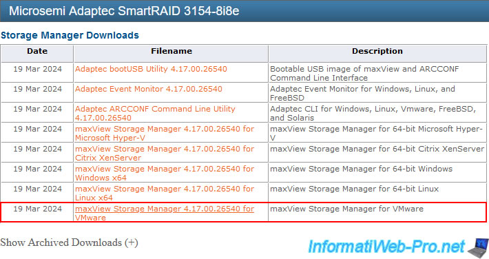 Note: as you can see in the download description, maxView Storage Manager version 4 is compatible with VMware ESXi 7 and 8.