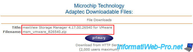 As you can see, the suggested file for downloading "maxView Storage Manager 4.17.00.26540 for VMware" is "msm_vmware_B26540.zip".