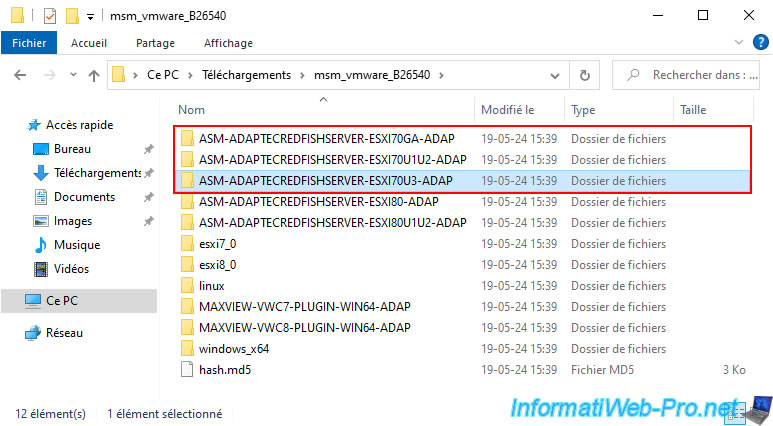 In this case, you will need to choose the "ASM-ADAPTECREDFISHSERVER-ESXI70...-ADAP" folder which corresponds to your version of VMware ESXi.