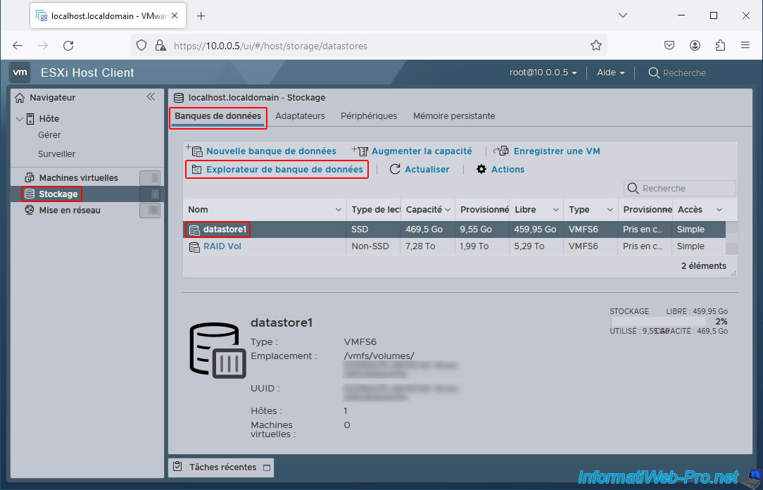 On your VMware ESXi hypervisor, go to "Storage -> Datastores" section, select the datastore "datastore1" (for example), and then click "Datastore browser".