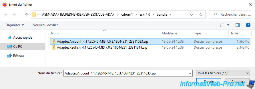 In the selected folder (in our case "ASM-ADAPTECREDFISHSERVER-ESXI70U3-ADAP"), navigate to the "cdrom1\esxi7_0\bundle" subfolder.