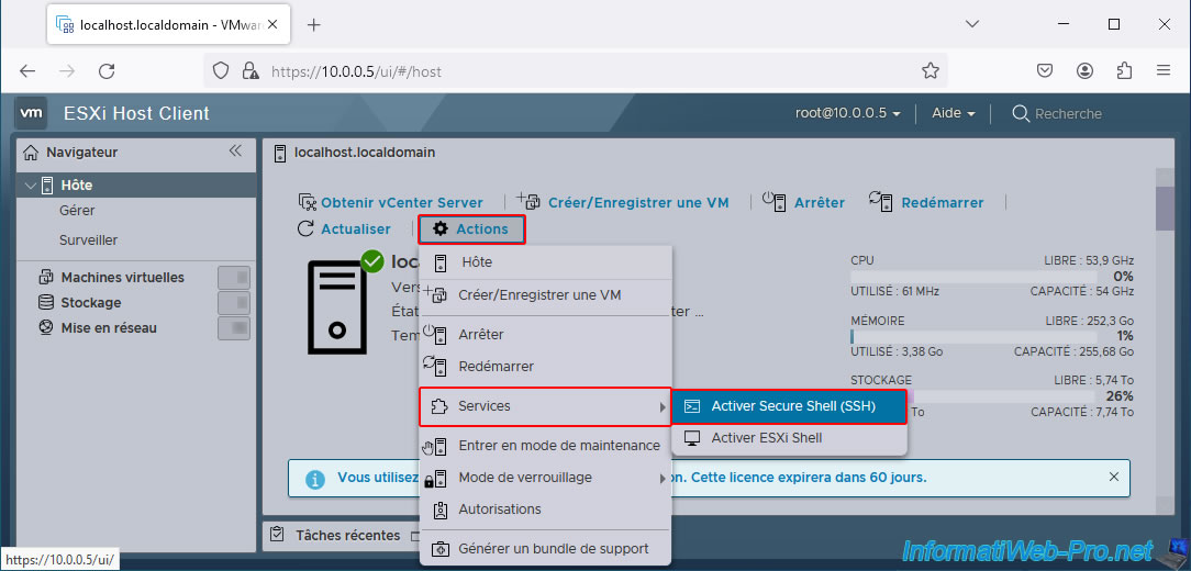 To do this, go to the "Host" section and click Actions -> Services -> Enable Secure Shell (SSH).