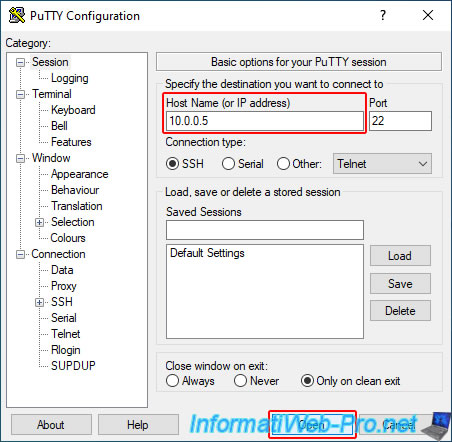 Download the popular SSH client "PuTTY", type the IP address of your VMware ESXi hypervisor and click "Open".