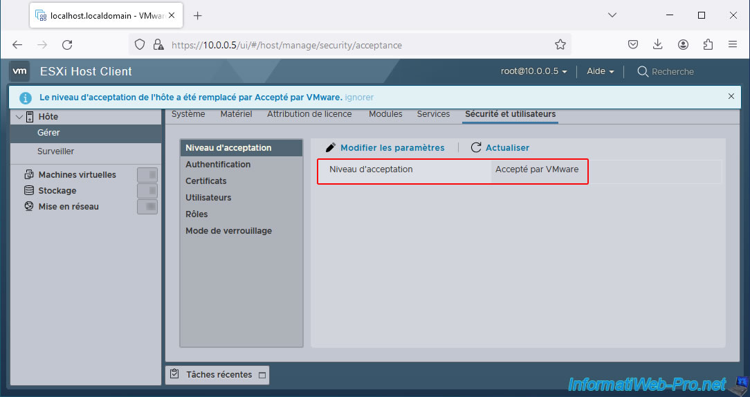 Your VMware ESXi 7 hypervisor acceptance level is now "Accepted by VMware".