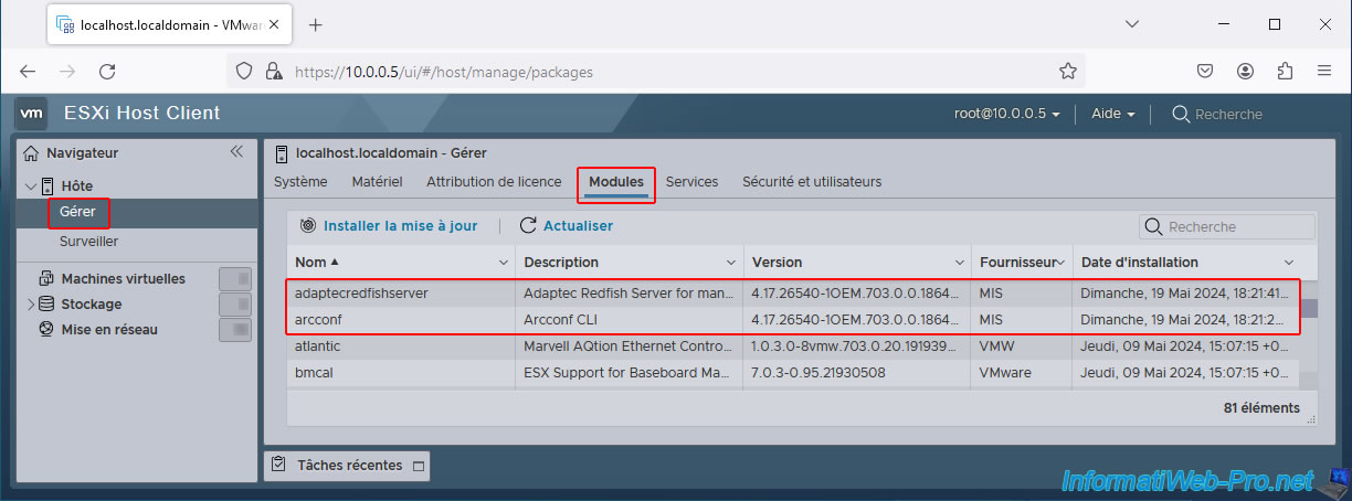 Note that "arc-cim-provider" (which was used with maxView for VMware ESXi 6.7) is not supported by VMware.