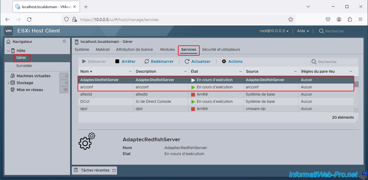 This will allow maxView Storage Manager to display information about your server's Adaptec SmartRAID controller on VMware ESXi by connecting to the previously installed Redfish server.
