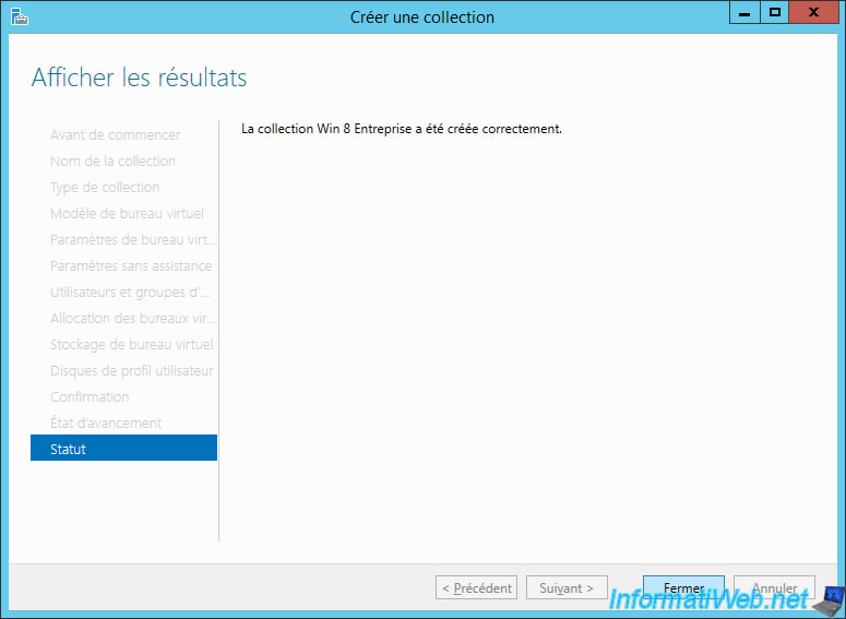 Then, the wizard will create the virtual desktops on your Hyper-V server.