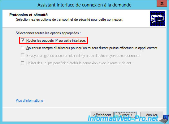 In the "Protocols and Security" step, only check the "Route IP packets on this interface" box.