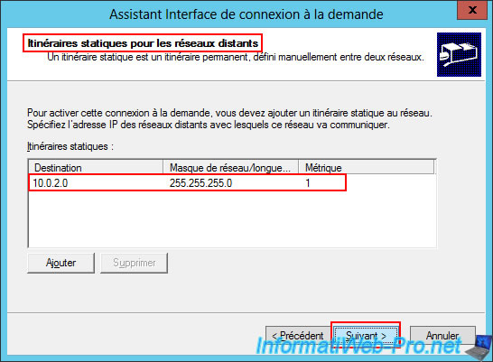 Even if your server knows it can access the remote network (in our case: 10.0.2.0) via the "paris" demand-dial connection you just created, this isn't enough for network packet routing to work properly.