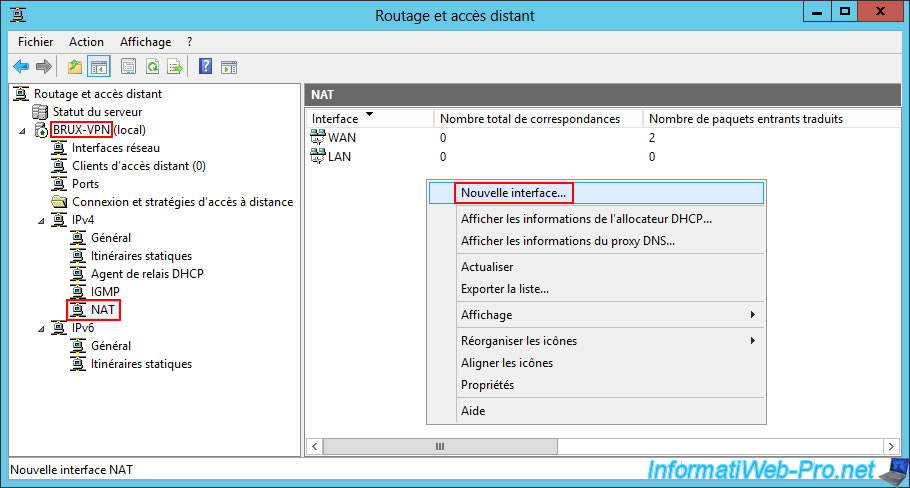 The demand-dial interface now appears in the "IPv4 -> NAT" section of your server.