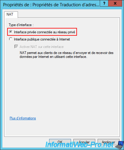 Simply select the "Private interface connected to private network" option and click OK.