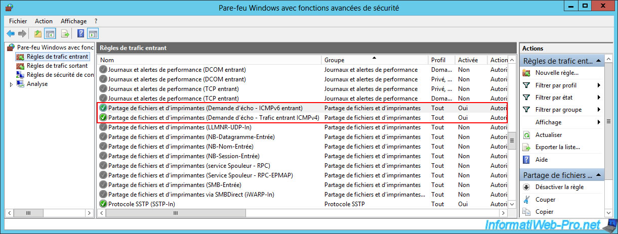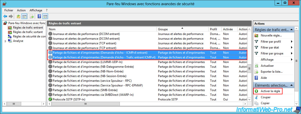 Warning : on both VPN servers, go to the advanced settings of the Windows Firewall and enable these rules: