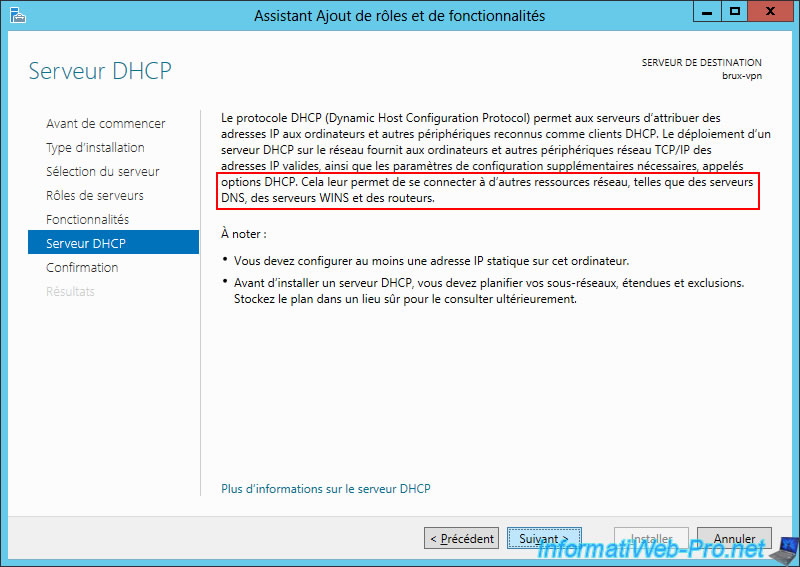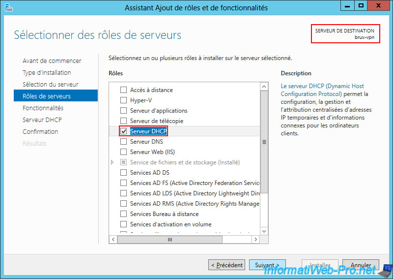 On this "brux-vpn" server, install the "DHCP Server" role.