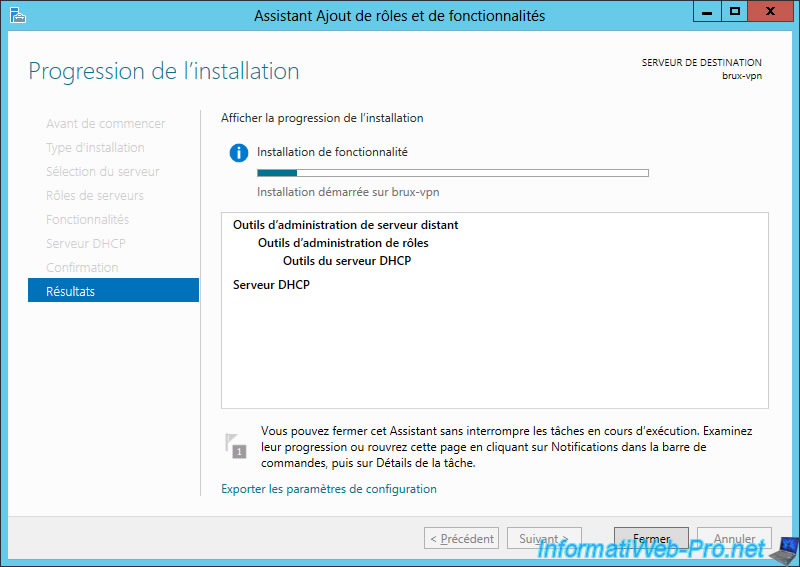 Please wait while the DHCP server is installed on this "brux-vpn" server.