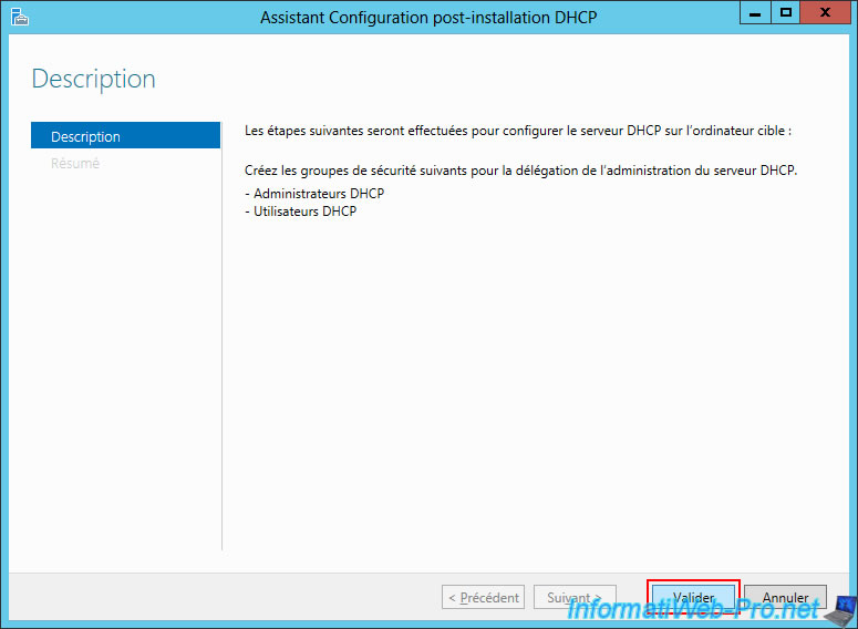 Simply click "Validate" to create the security groups needed for DHCP server administration.
