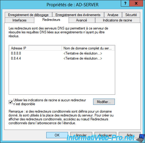 Then, go in the "forwarders", click the "Edit" button at the bottom of the list and add the Google public DNS servers (8.8.8.8 and 8.8.4.4).