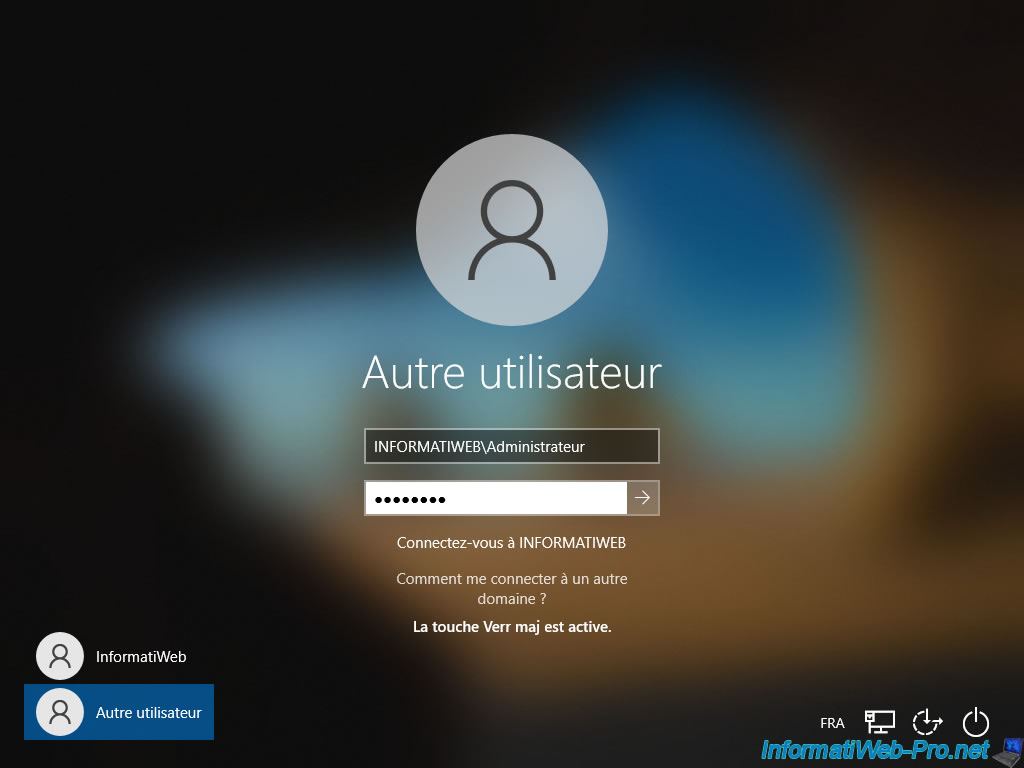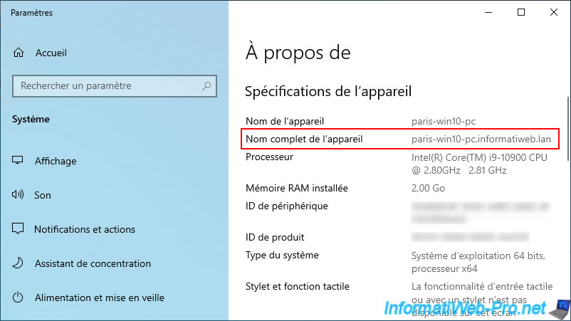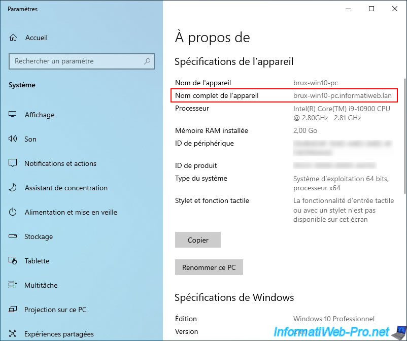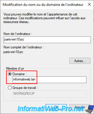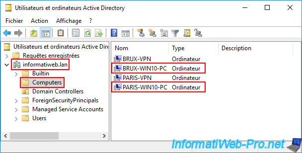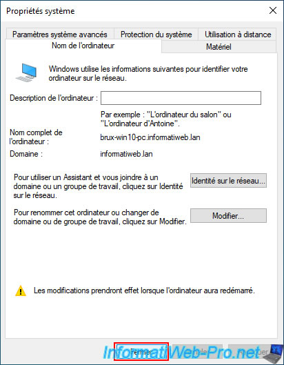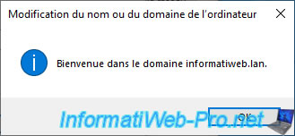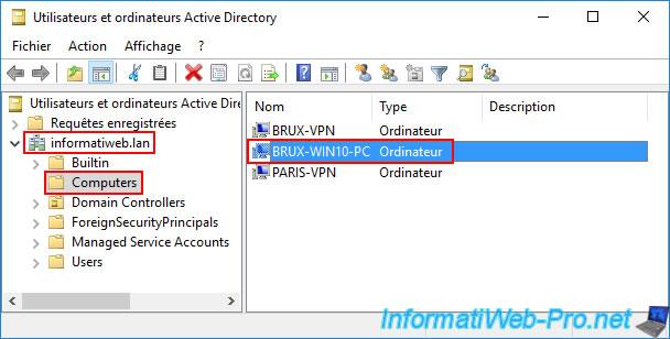 As expected, our computer "brux-win10-pc" is joined to our Active Directory domain "informatiweb.lan".
