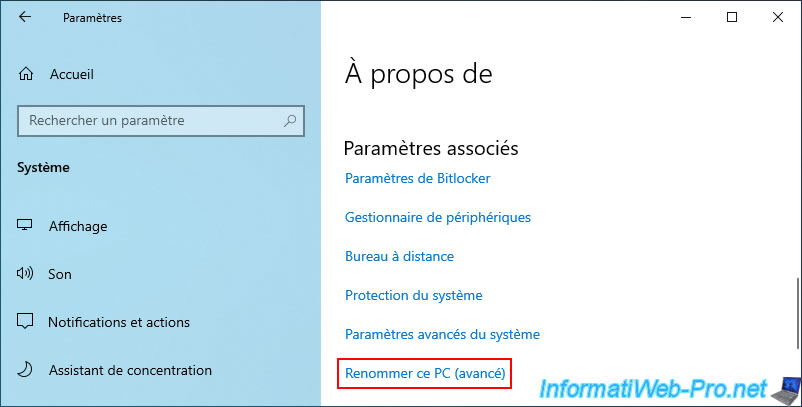 Then, at the bottom of the window, click the "Rename this PC (advanced)" link.