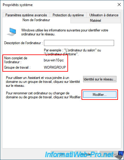 Currently, you can see that this computer, "brux-win10-pc," is in the "WORKGROUP" workgroup.