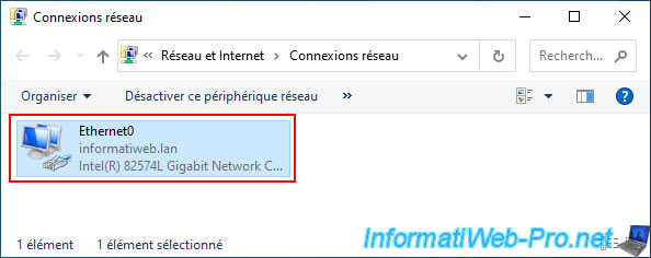 On a Windows 10 computer, search for the "View network connections" setting using the Start menu search engine, then double-click on your "Ethernet0" network connection.