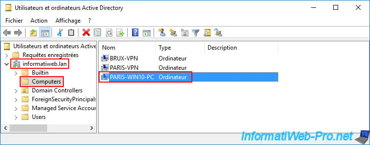 As expected, your computer "paris-win10-pc" is now a member of your AD domain.