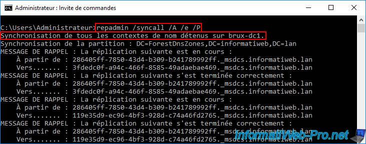 If necessary, force AD data replication with the "repadmin ..." command mentioned above (to be run on the domain controller where the computer account corresponding to this computer is located).