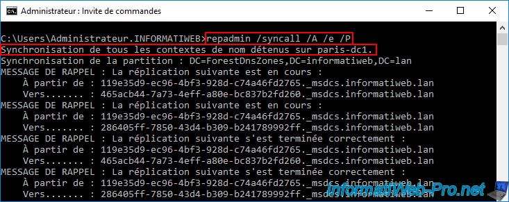 Same on the server "paris-dc1" of site 2 (Paris) for the computer account "PARIS-WIN10-PC".