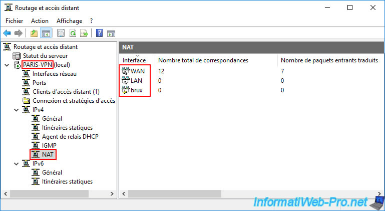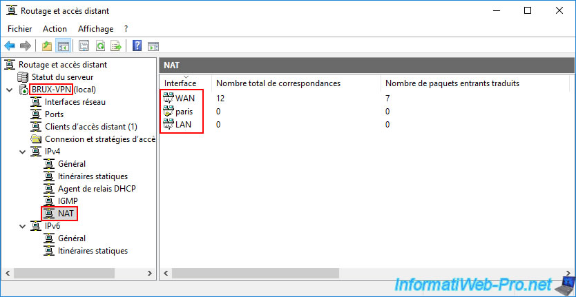 Again, in the "NAT" section of this remote VPN server (PARIS-VPN), check that your 3 network interfaces appear so that network packets are routed correctly.