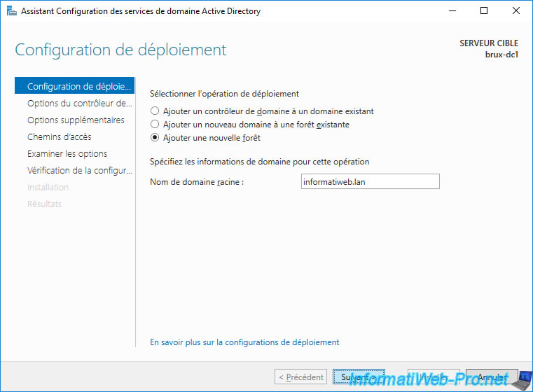 For detailed informations about creating a new domain controller, refer to the tutorial : Create an Active Directory domain controller (new AD domain).