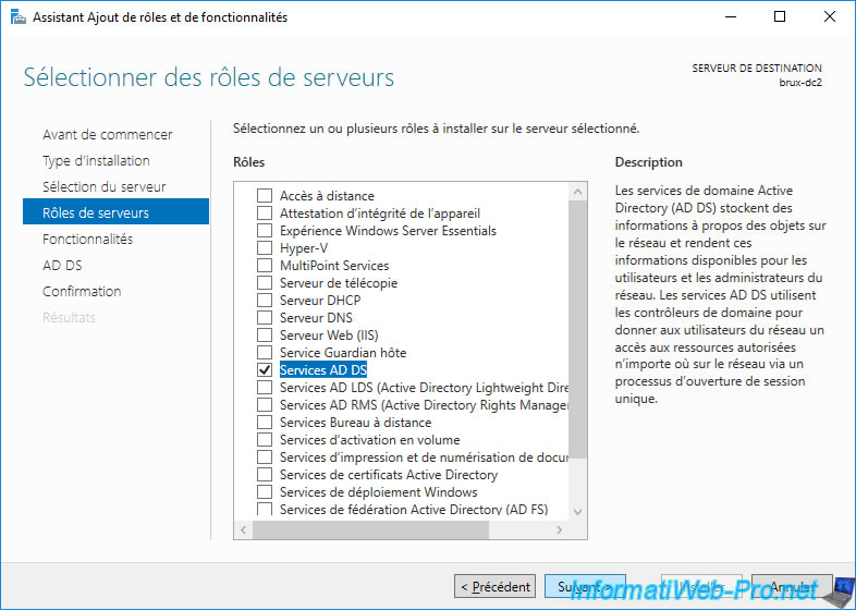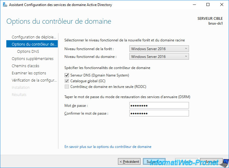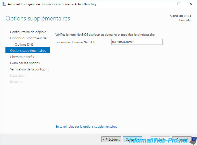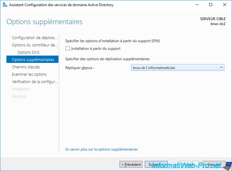 For the moment, there is only one domain controller available in the list, but we advise you to select the 1st server of the same Active Directory site (in our case : brux-dc1).