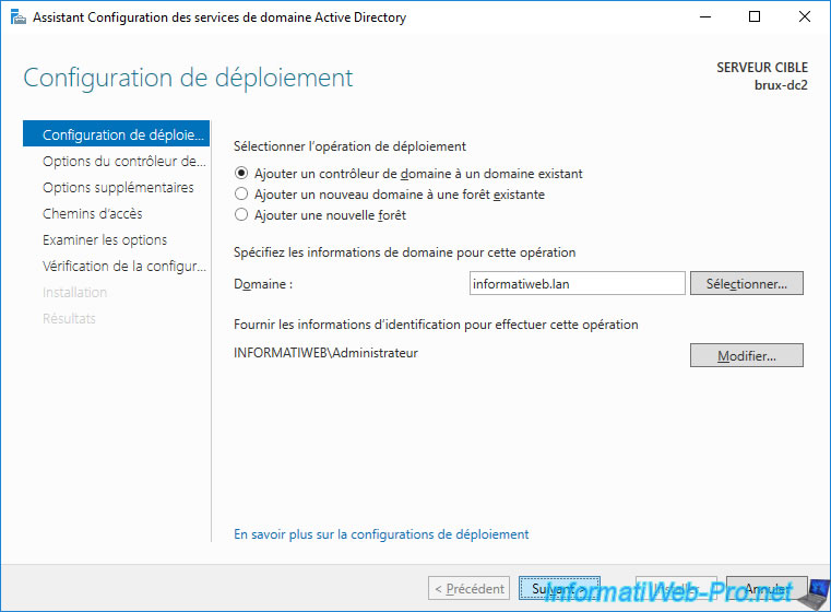 In our case, we used the credentials of the domain administrator (INFORMATIWEB\Administrator) and selected the "informatiweb.lan" domain.