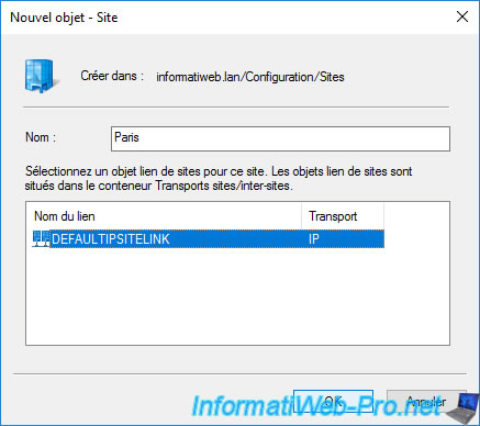 To do this, right-click on the "Inter-Site Transports -> IP" folder and click on : New Site Link.