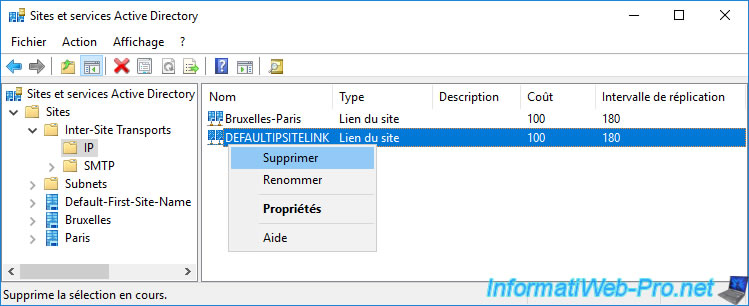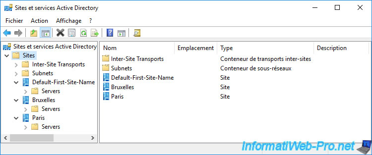 So that Active Directory can automatically adapt its replication topology and so that client PCs can connect to the domain controller closest to them (to speed up session openings, ...), you must configure the Active sites Directory and associate the different subnets used on each site.