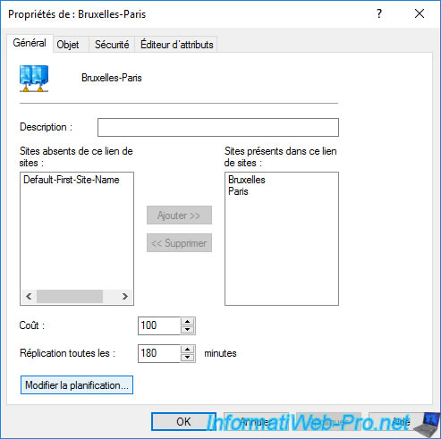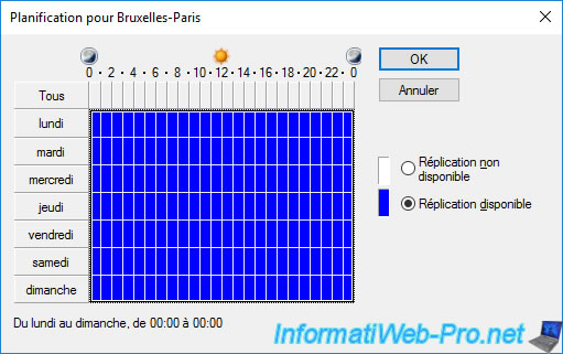 But, for example, you can change this schedule so that inter-site replications only take place outside working hours and thus avoid slowing down your company's Internet access when your employees are working there.