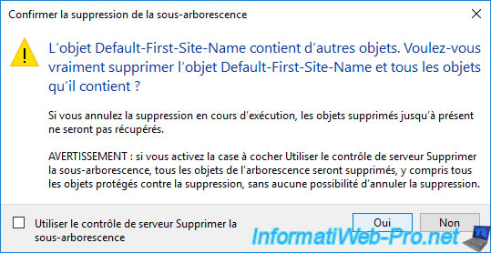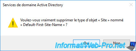 Confirm the deletion of the "Default-First-Site-Name" site by clicking on Yes.
